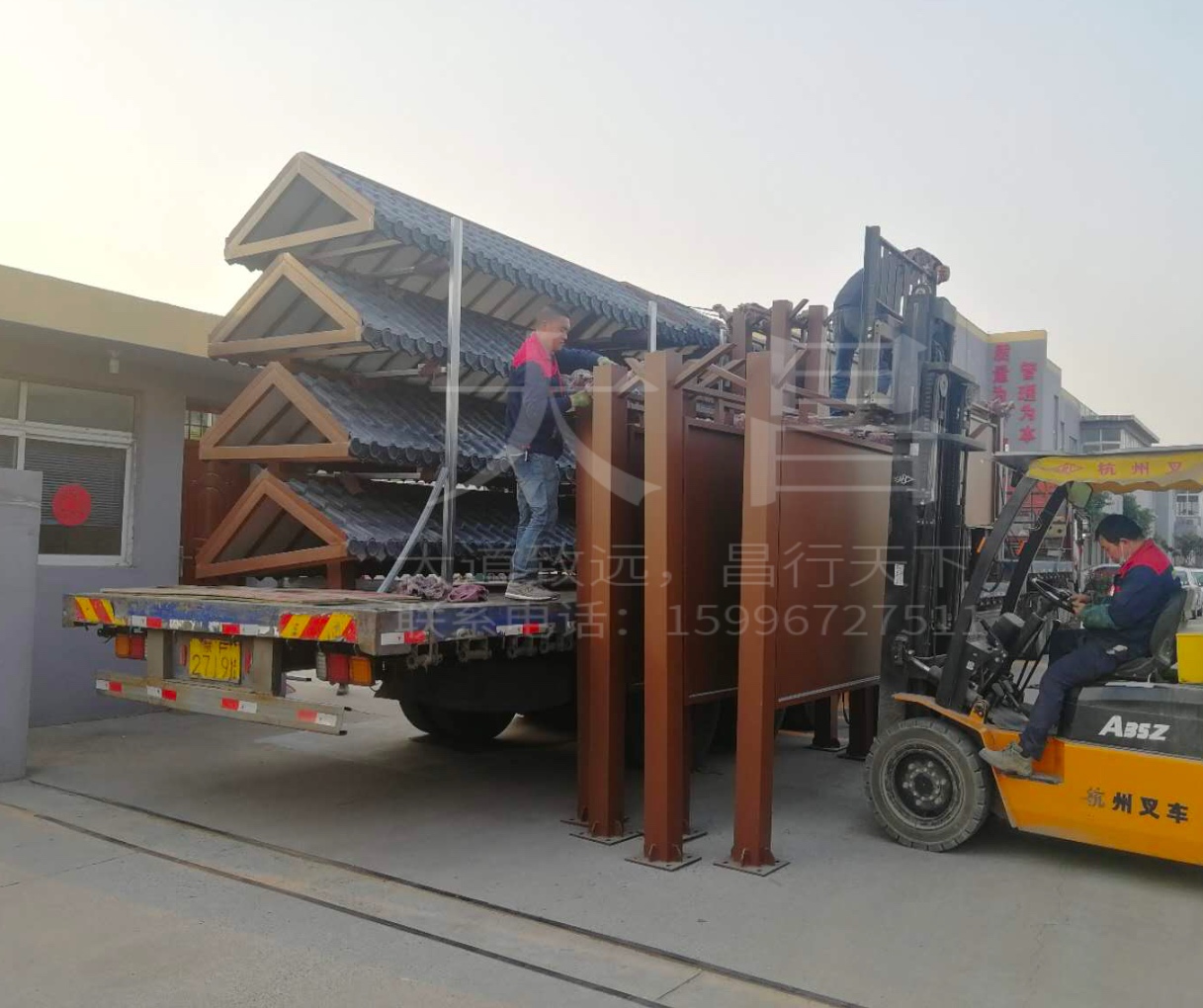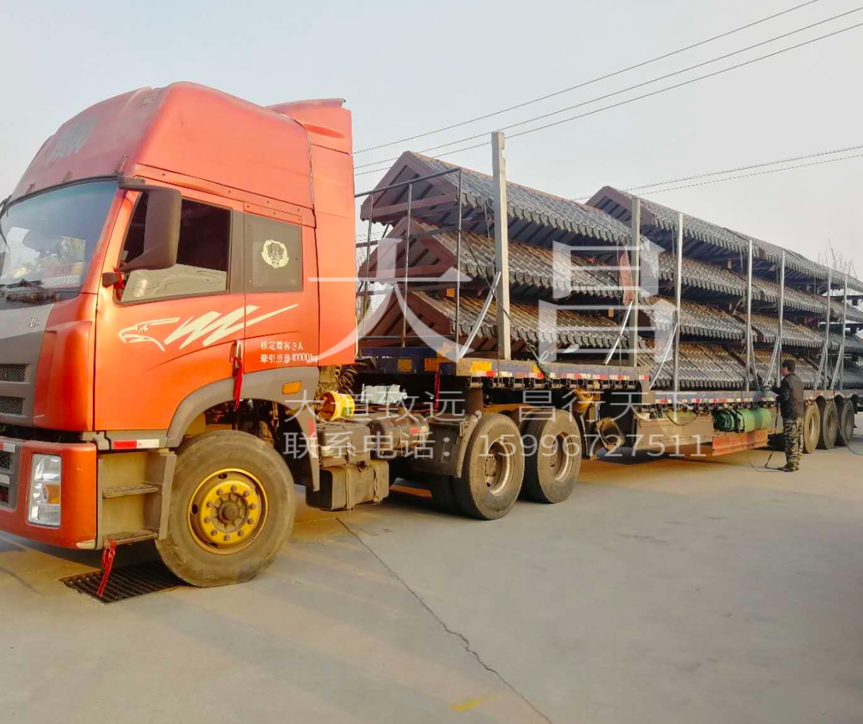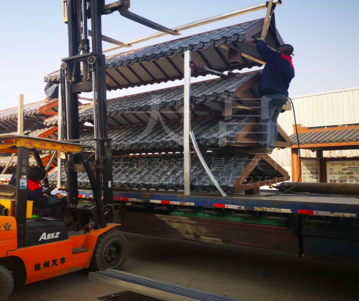 山東仿古候車亭兩車齊發,齊頭并進
