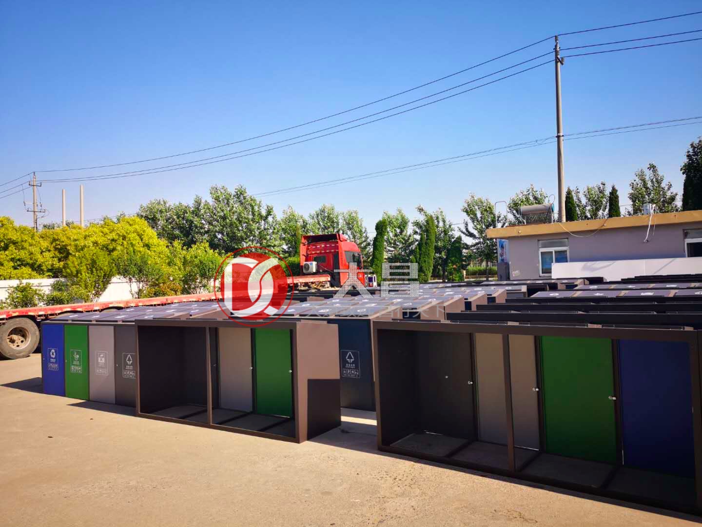四聯(lián)垃圾箱側(cè)開門采用不同顏色設(shè)計(jì),既明確區(qū)分了不同垃圾分類投放的標(biāo)志,又合理地避免了整體色調(diào)的單一性。