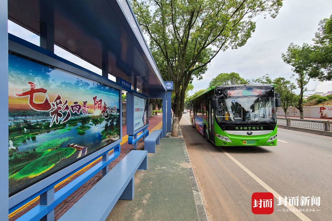 從西昌市區(qū)乘坐公交車前往邛海瀘山景區(qū),可以看到,沿線的公交站臺(tái)已經(jīng)全部換新。新的公交站臺(tái),以藍(lán)色為主色調(diào),造型簡潔,外觀大氣。候車亭內(nèi),設(shè)置有西昌市主要街道及旅游服務(wù)設(shè)施和涼山旅游景區(qū)示意圖。此外,還安裝了顯示屏,能顯示實(shí)時(shí)公交車運(yùn)行班次和距離本站的距離等信息。